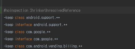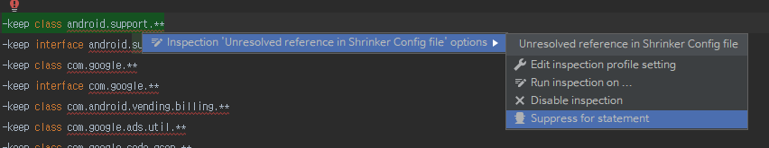 proguard-rules 작성 시 <Unresolved class name Error> lint